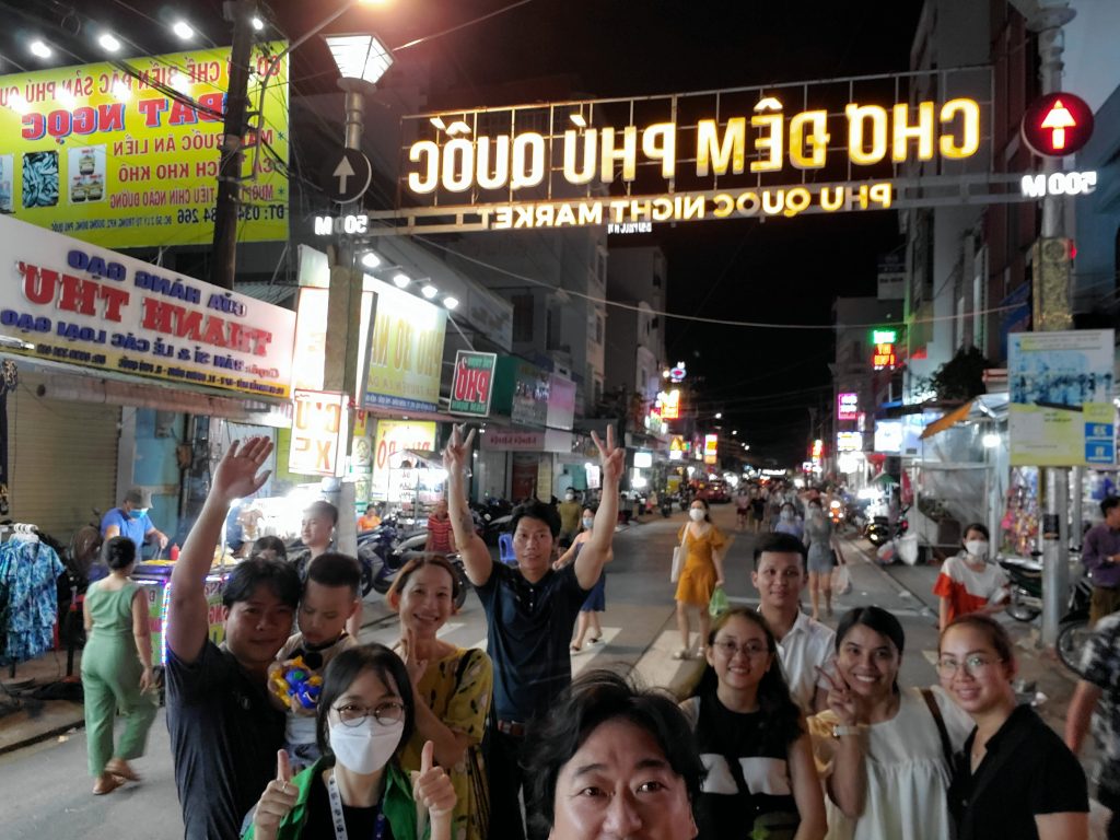 Ăn xong, chúng tôi thẳng tiến đến chợ đêm Phú Quốc để xem ở đây có bán gì. Không khí vô cùng tấp nập, kẻ bán người mua chen chúc nhộn nhịp như chưa từng có dịch Covid xảy ra.